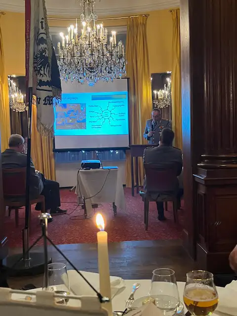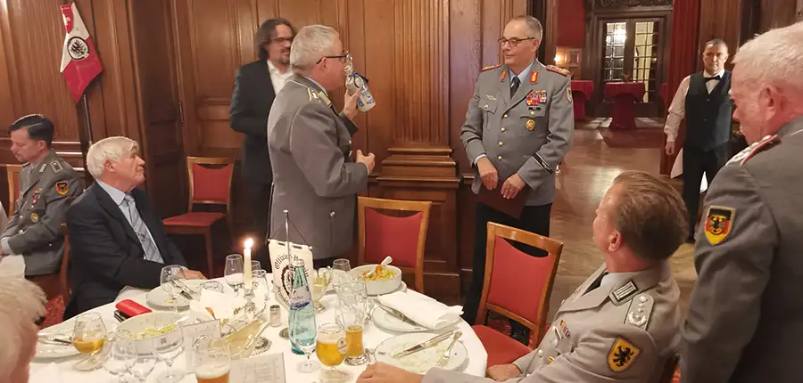 Im festlichen Rahmen der Villa Bonn lud unser Offizier-Verein zum Gesellschaftsabend am 24. Oktober 2025 ein, bei dem der ehemalige Inspekteur des Heeres, Generalleutnant Alfons Mais, zur verteidigungspolitischen Lage und zum Zustand der Bundeswehr vortrug.